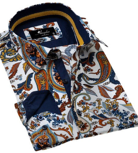 Colorful Paisley Mens Slim Fit Designer Dress Shirt - tailored Cotton Shirts for Work and Casual