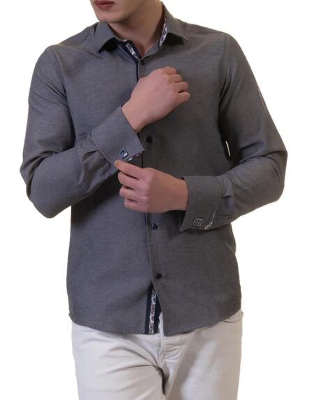 Dark Grey Mens Slim Fit French Cuff Shirts with Cufflink Holes - Casual and Formal