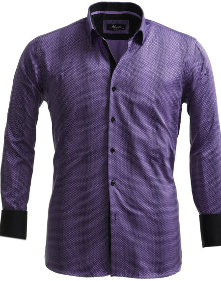 Purple Design Mens Slim Fit French Cuff Shirts with Cufflink Holes - Casual and Formal