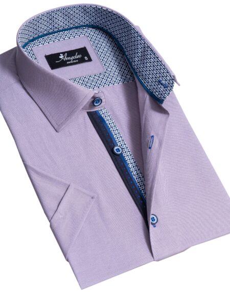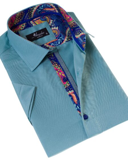 Grayish Blue Mens Short Sleeve Button up Shirts - Tailored Slim Fit Cotton Dress Shirts