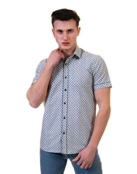 Grey Mens Short Sleeve Button up Shirts - Tailored Slim Fit Cotton Dress Shirts