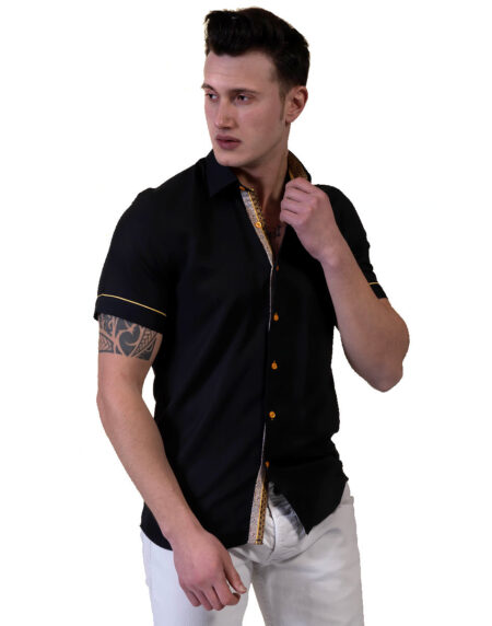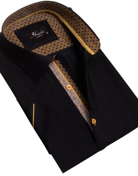 Jet Black Mens Short Sleeve Button up Shirts - Tailored Slim Fit Cotton Dress Shirts