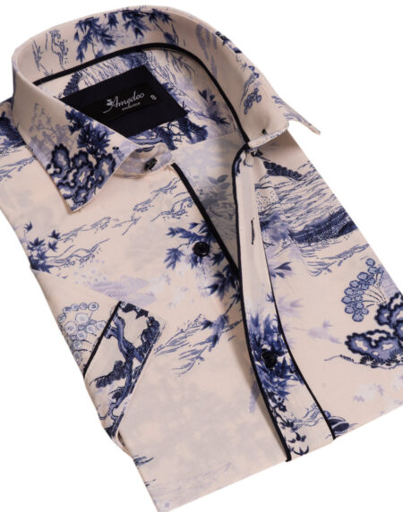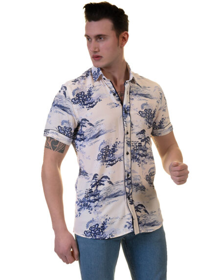 Floral Mens Short Sleeve Button up Shirts - Tailored Slim Fit Cotton Dress Shirts