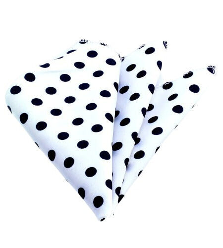White Black Polka Dots Mens Pocket Square - Premium Silk Handkerchiefs for Suits