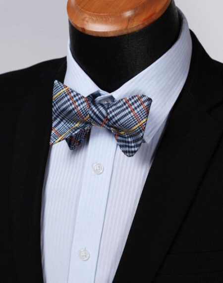 Blue Orange Mens Silk Self tie Bow Tie with Pocket Squares Set