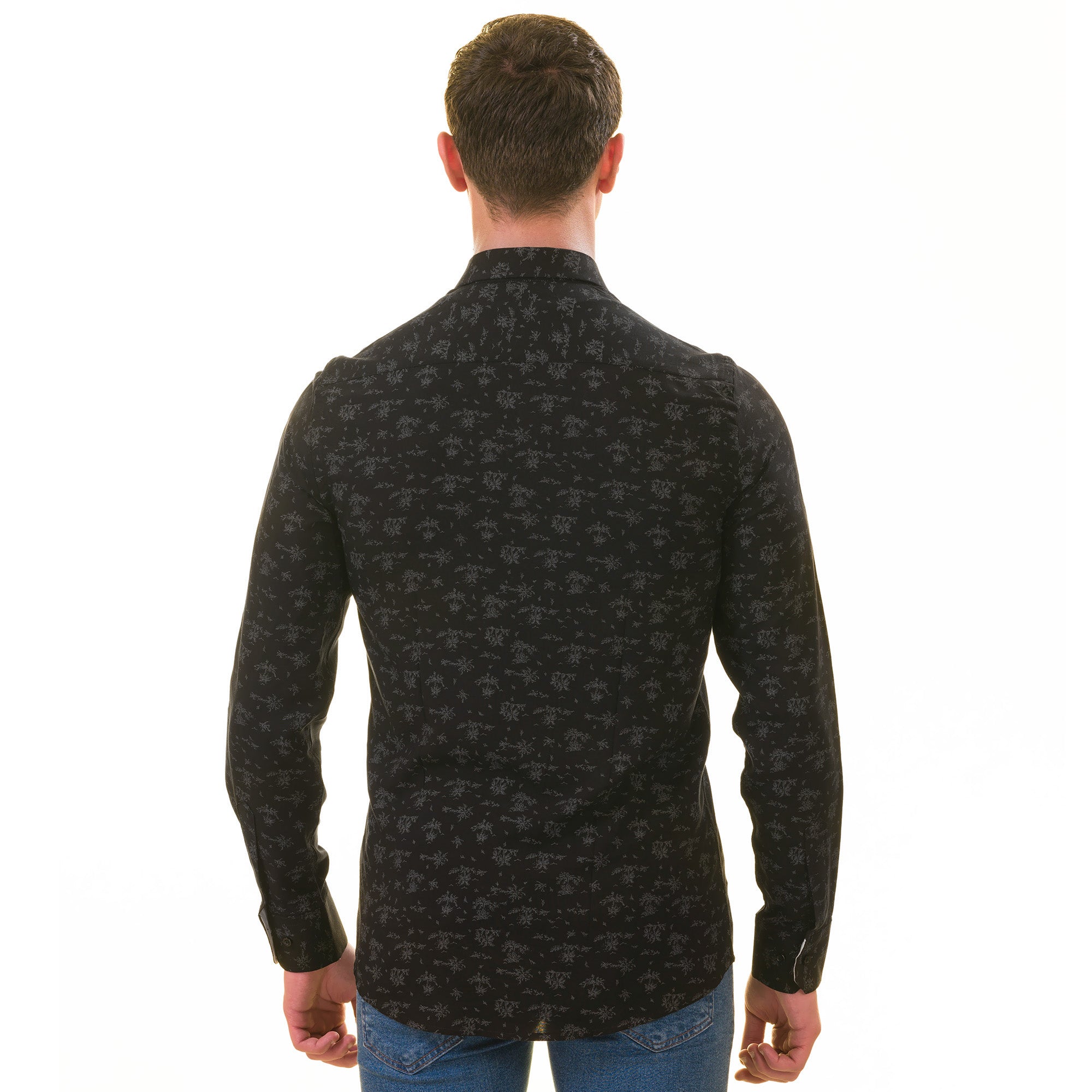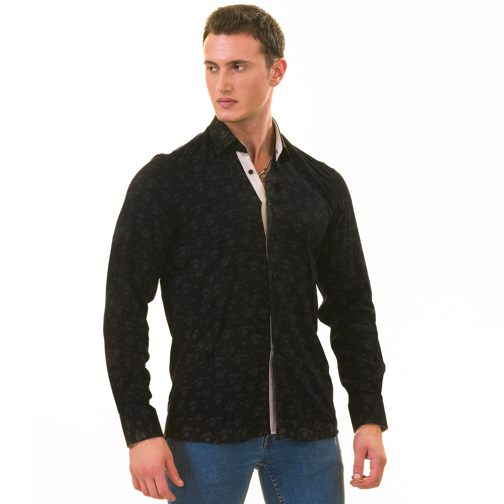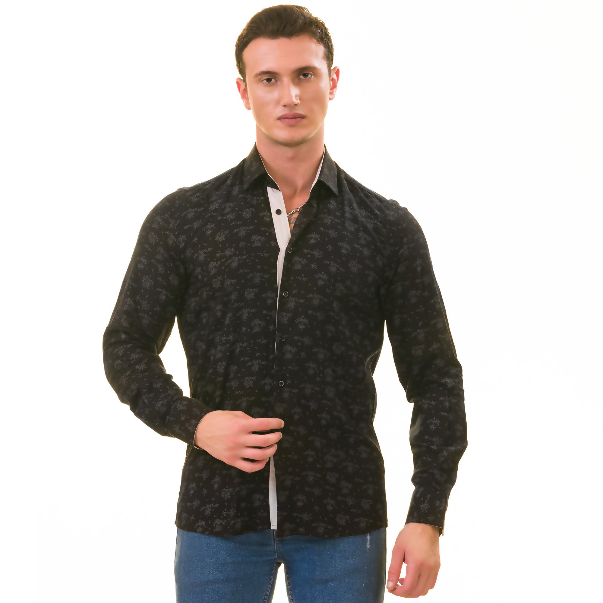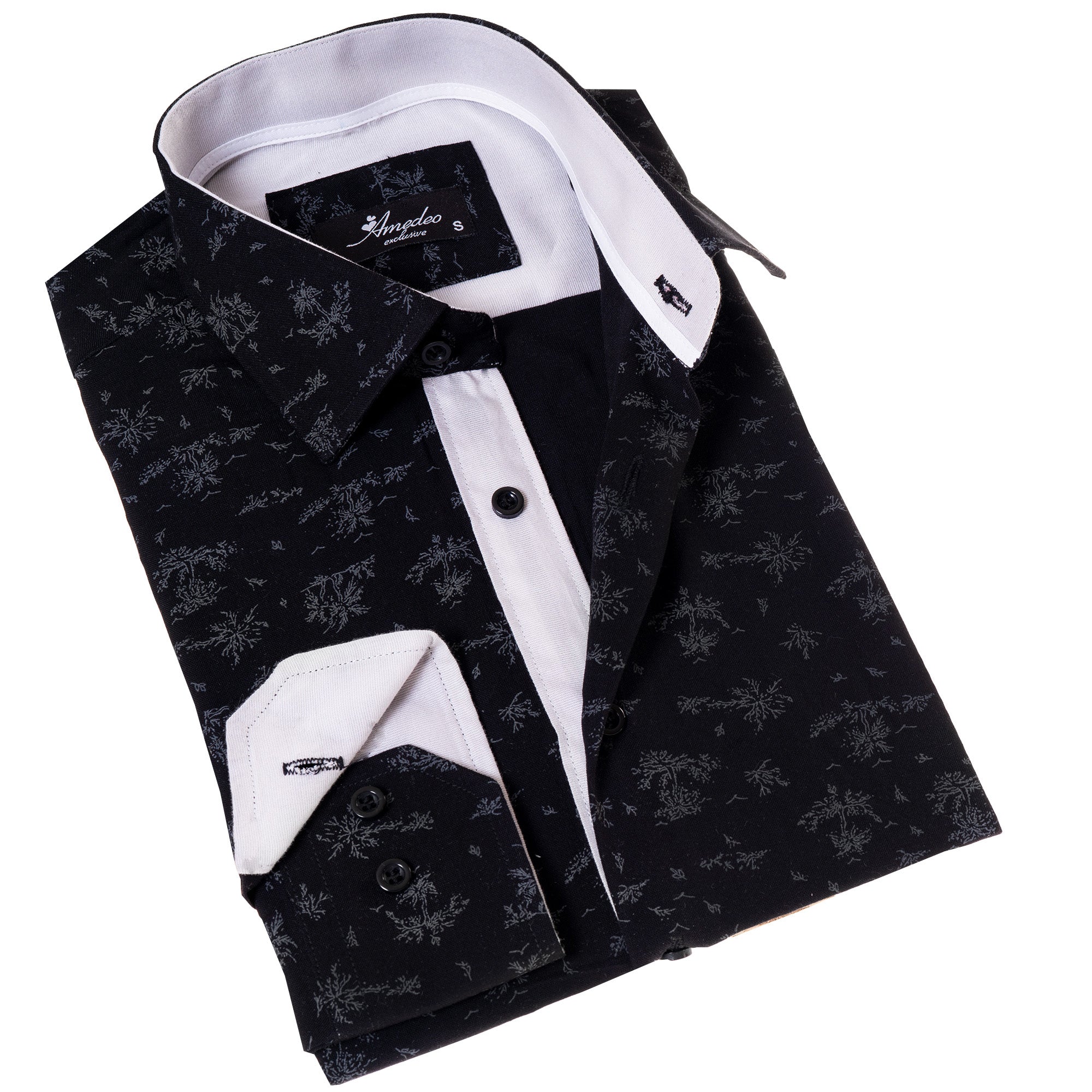 Amedeo Exclusive presents the Black Floral Shirt Mens, perfect for formal or casual wear. This shirt gives you two looks in one with its designer cuff for customizable style.