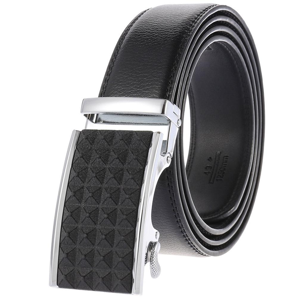 Black Textured Buckle Mens Adjustable Ratchet Slide Buckle Belt – Standard Leather Automatic Belt