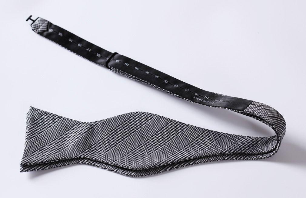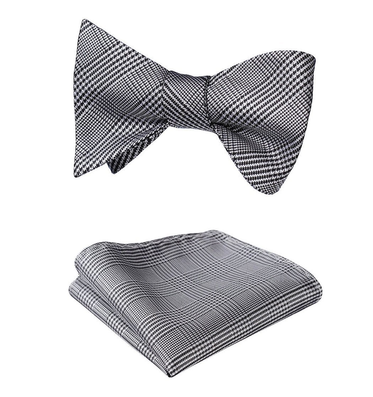 Black White Check Mens Silk Self tie Bow Tie with Pocket Squares Set