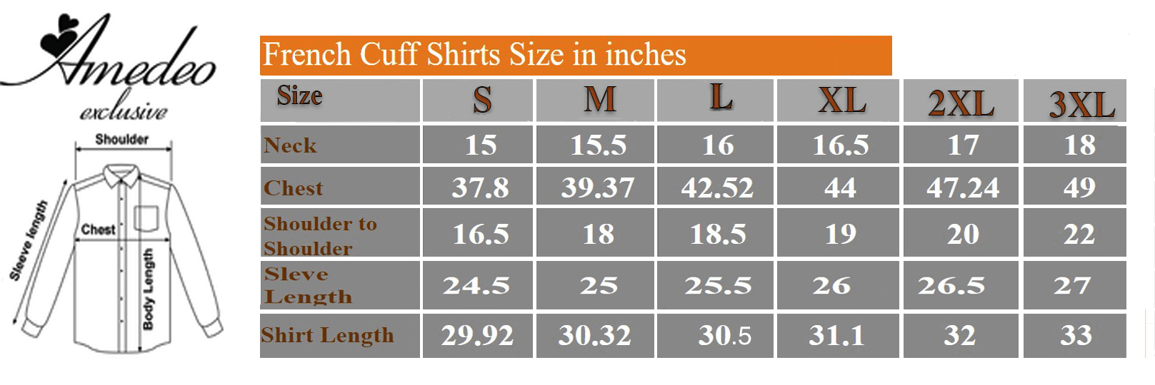 Update your Smart / Casual wardrobe with this luxurious, eye-catching Amadeo Exclusive French cuff dress shirt. Pair this shirt with denim jeans, pants, or plain, loose shorts and be sure to be flattered with compliments.