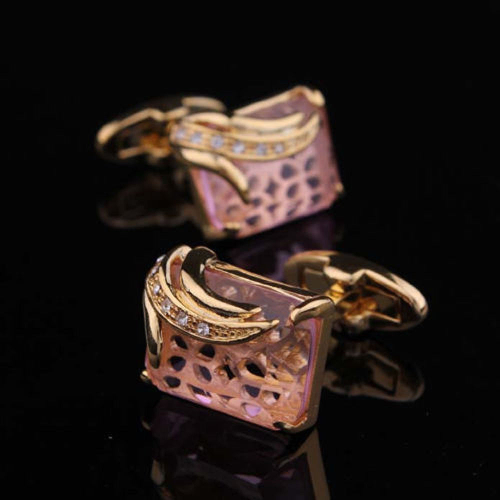 Exclusive Gold + Pink Mens Stainless Steel Squares Cufflinks for Shirt with Box – Hand Crafted