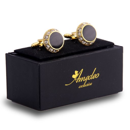 Gold Mens Stainless Steel Circles With Stones Cufflinks for Shirt with Box – Hand Crafted Perfect