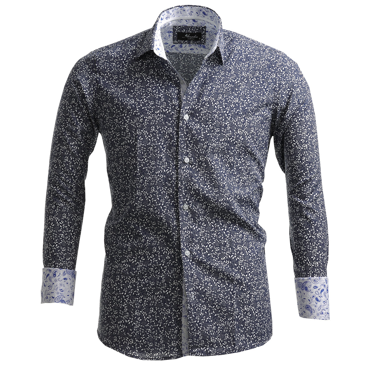Grey Blue Floral Mens Slim Fit French Cuff French Cuff Shirts with Cufflink Holes – Casual and Formal