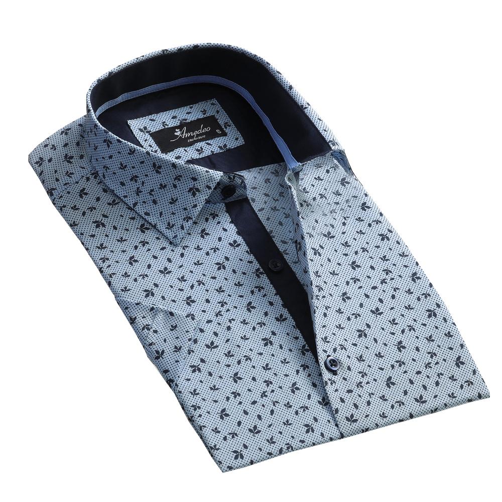 Light Blue Floral Mens Short Sleeve Button up Shirts – Tailored Slim Fit Cotton Dress Shirts