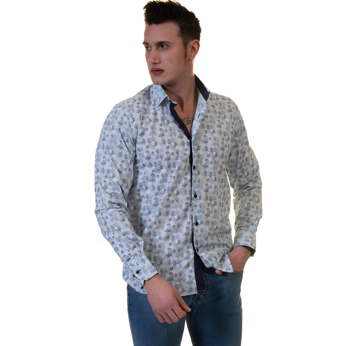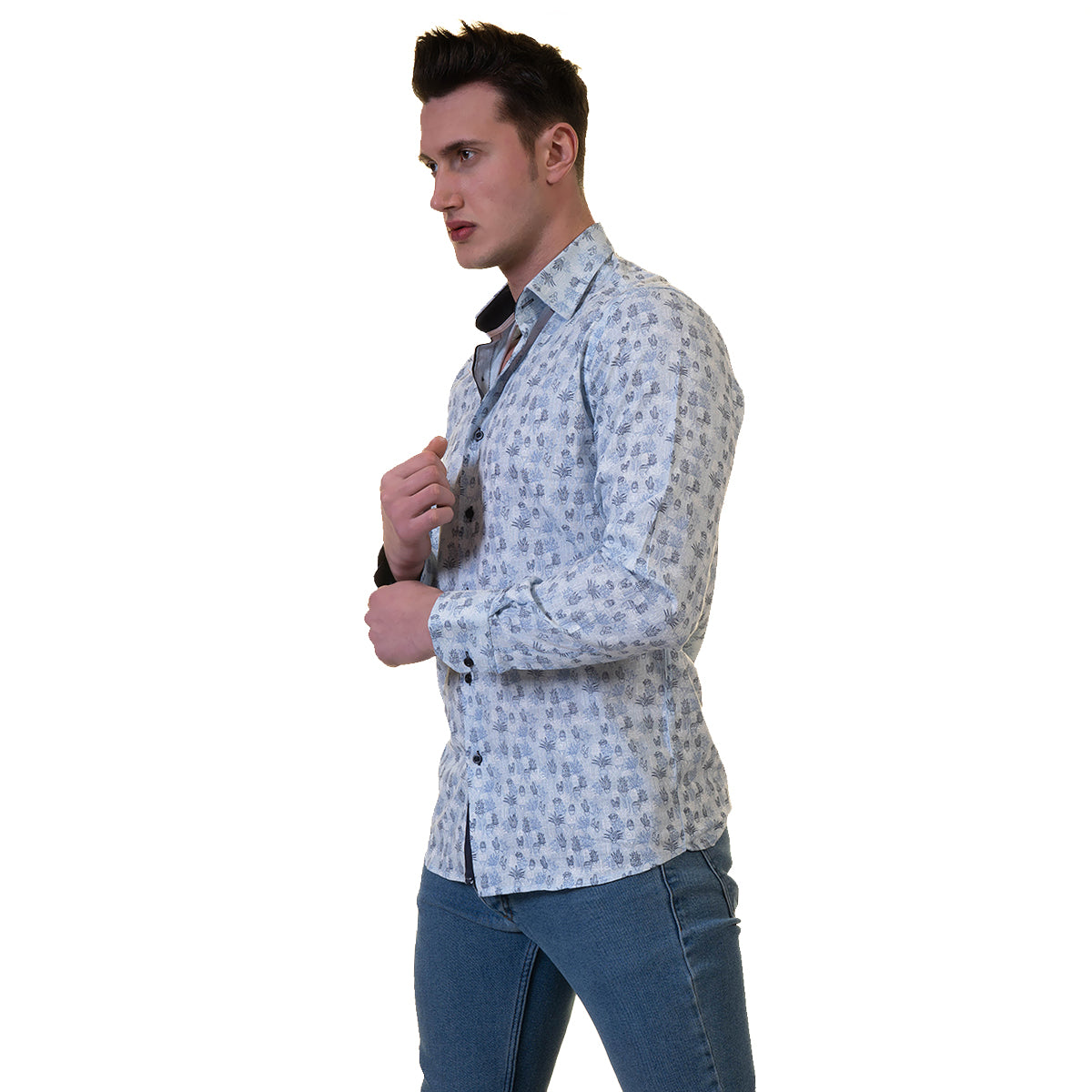 Light Blue Floral Mens Slim Fit Designer Dress Shirt – tailored Cotton Shirts for Work and Casual Wear