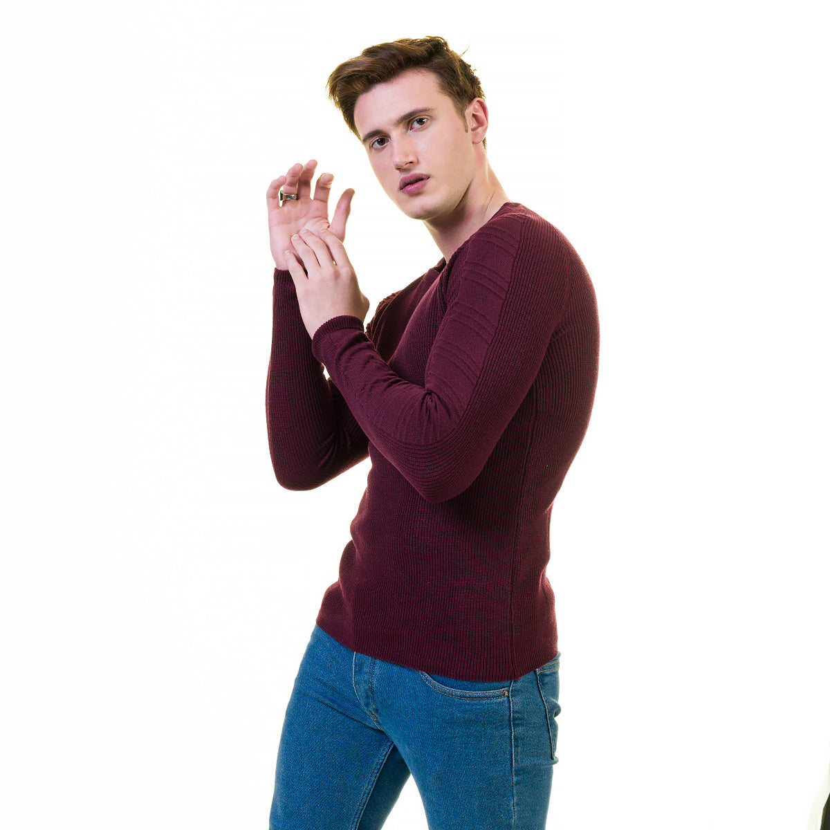 Maroon European Wool Luxury Zippered With Sweater Jacket Warm Winter Tailor Fit