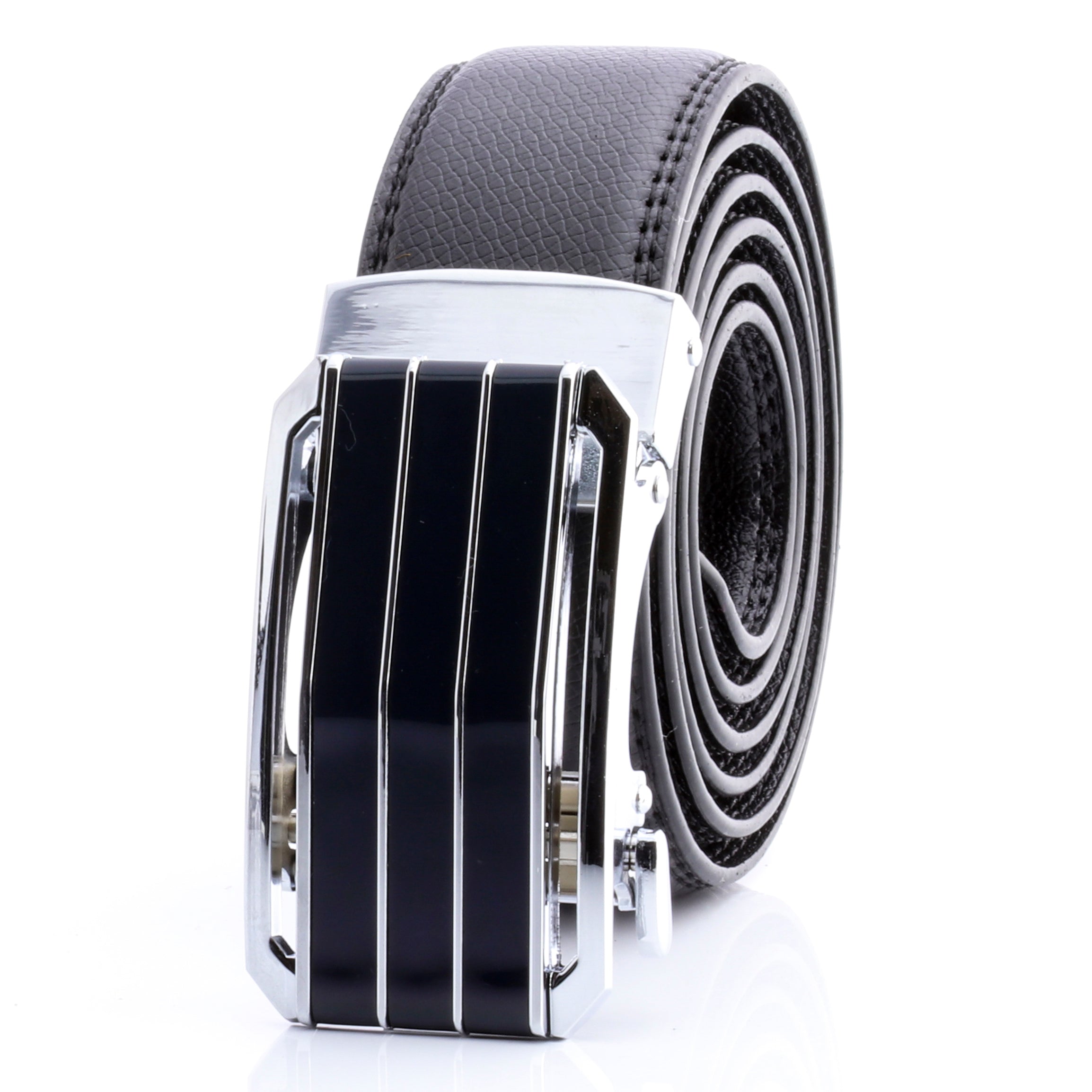 Men’s Black Ratchet Belt Stainless Steel Silver & Black Buckle | Comfort Click fits 26”–52” waist