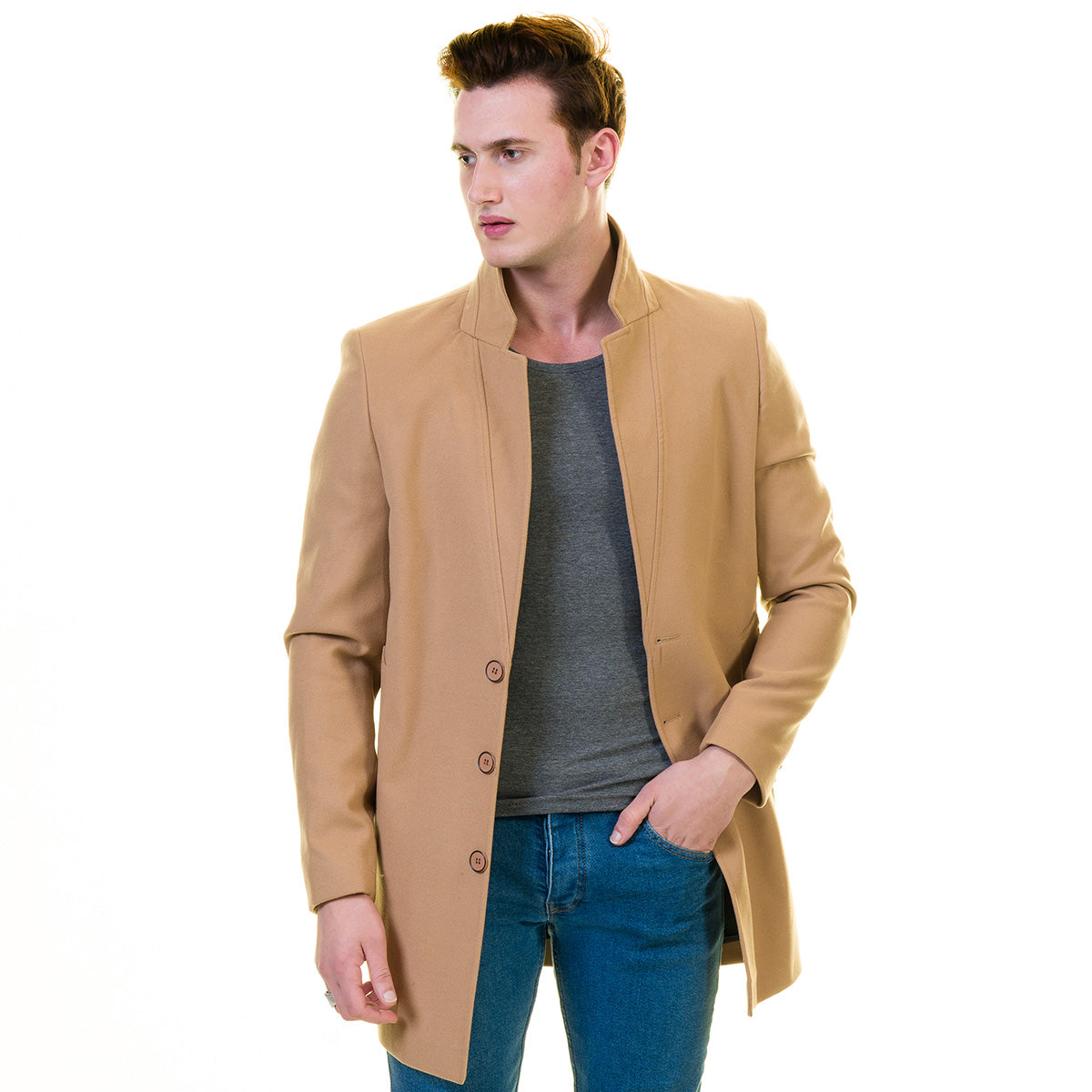Men’s European Beige Wool Coat Jacket Tailor fit Fine Luxury Quality Work and Casual