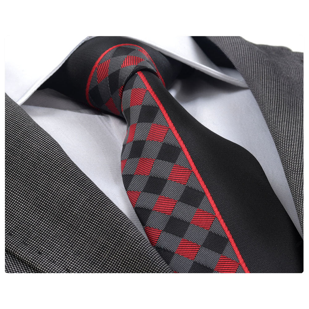 Men’s Fashion Red Plaid Half Black Tie Silk Neck Tie Gift Box