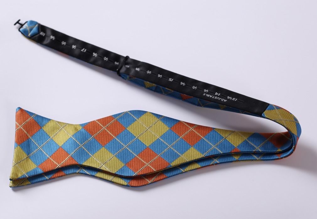 Men’s Olive Orange Blue Check Silk Self Bow Tie With Handkerchief