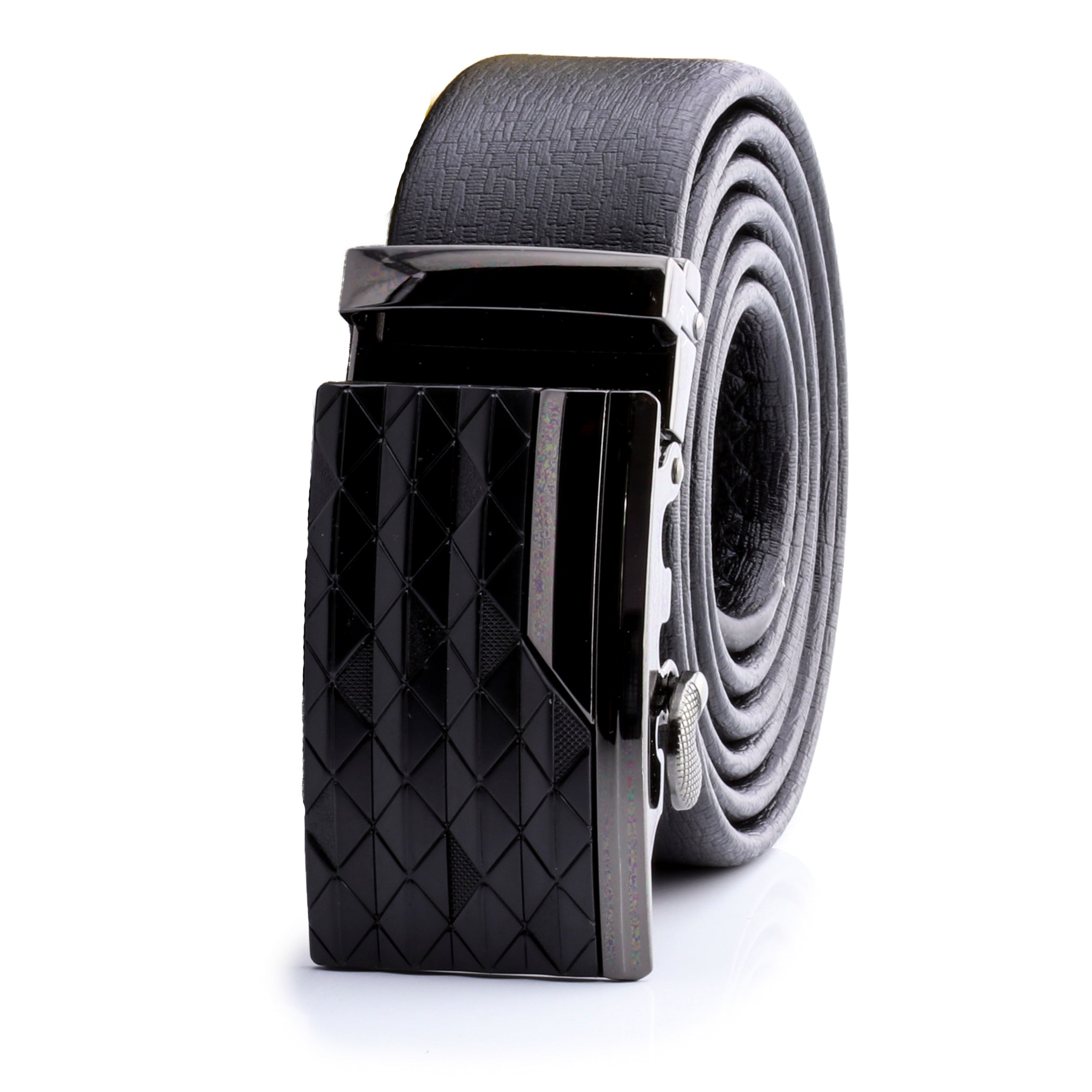 Comfort Click perfect fit belt – the belt that fits every time, all the time. The smart ratchet no hole automatic buckle belt with brushed chrome buckle fits waist 26 – 52 with micro-adjustable 32-position ratcheting track system for custom fit. Can adjust throughout the day. You’ve never worn a more comfortable belt. Amedeo Exclusive, No Holes Automatic Belt are here! No more making holes in your belts, and then having to replace them every 6 months! This beautiful durable no hole belt will last, LONG! Bunch of gorgeous metal buckles to choose from. Premium Quality with Stainless Steel Buckle.