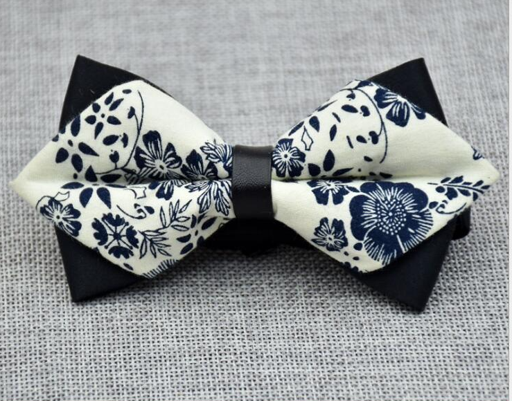 Men’s White Blue Floral 100% Cotton Elegant Pre-Tied Bow Tie