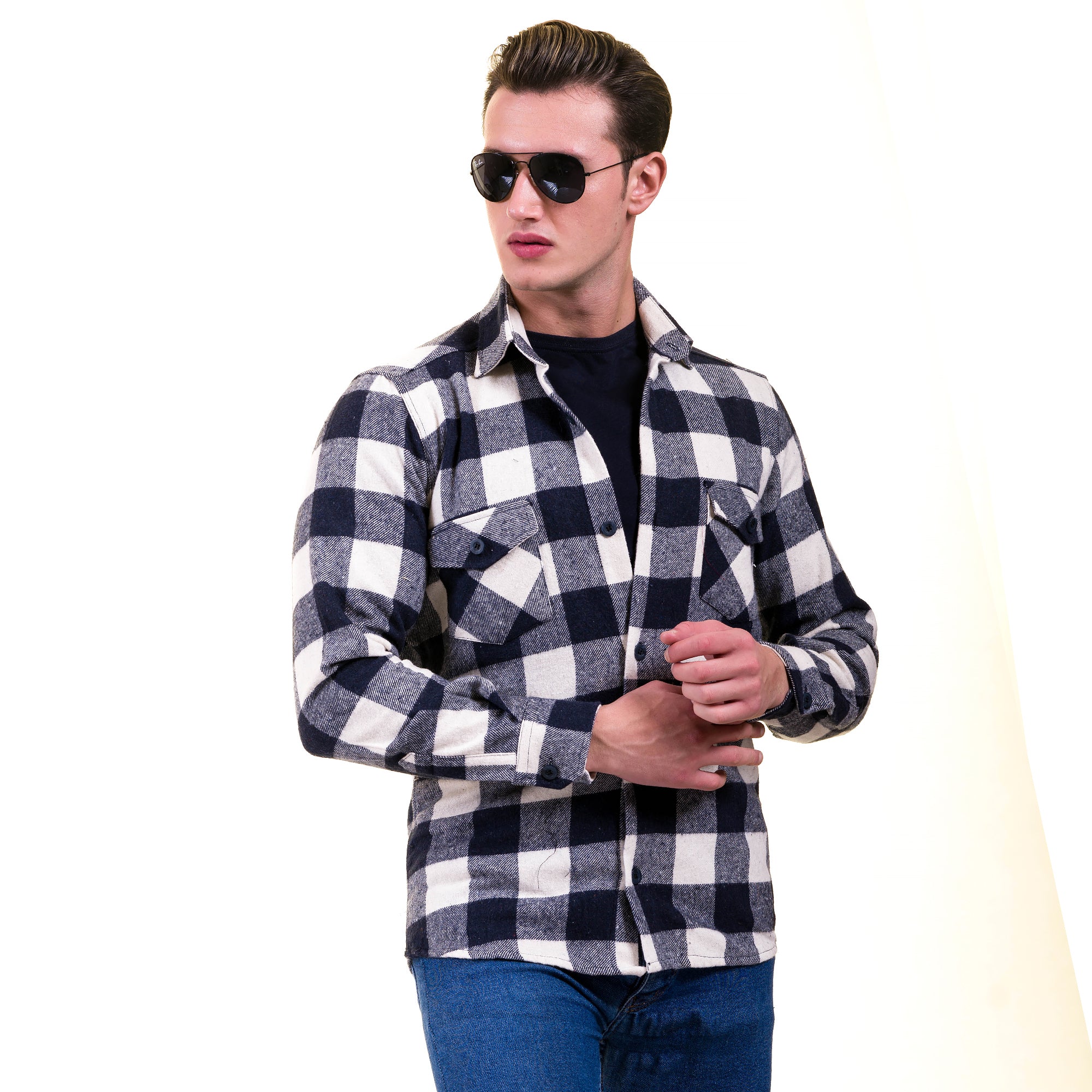 Our Collection of Slim Fit Designer Navy Blue and White Check Shirt are produced in traditional Turkish cotton mills, with a long history of producing unsurpassed textiles you can be assured of the high quality of this garment.