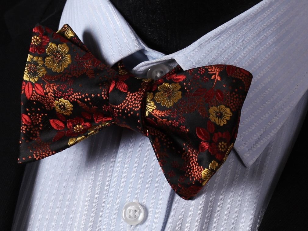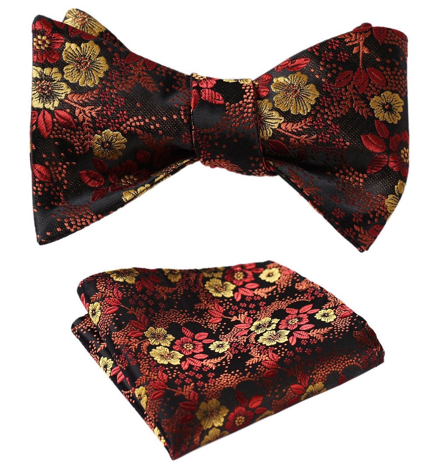 Orange Floral Mens Silk Self tie Bow Tie with Pocket Squares Set