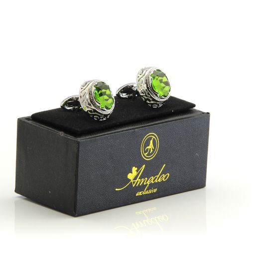 Silver with Big Green Stone Mens Stainless Steel Round Cufflinks for Shirt with Box – Hand Crafted Perfect