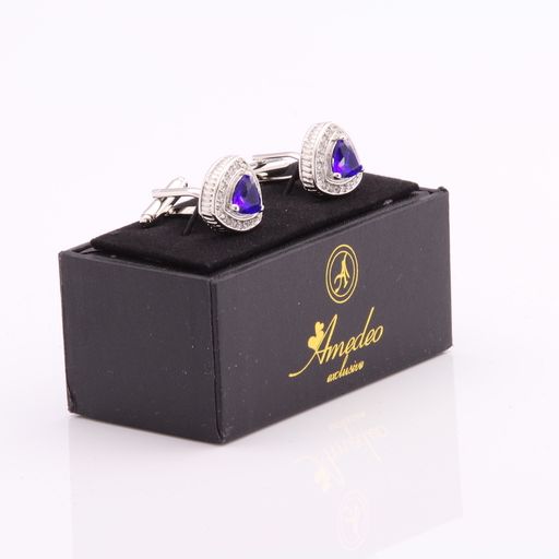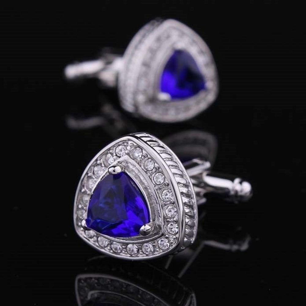 Silver with Light Blue Stone Mens Stainless Steel Triangle Cufflinks for Shirt with Box – Hand