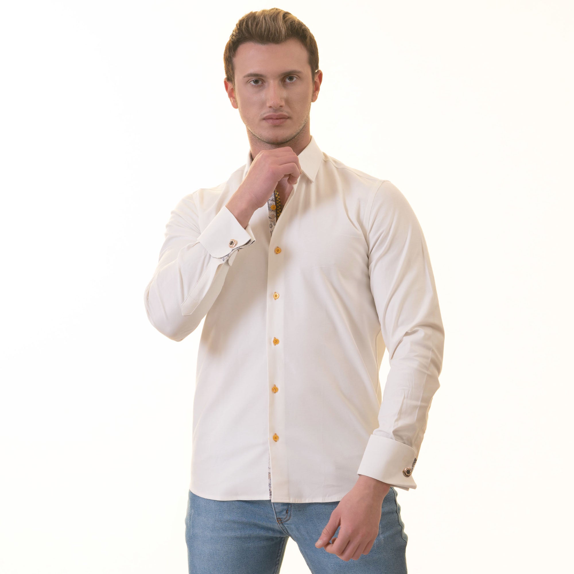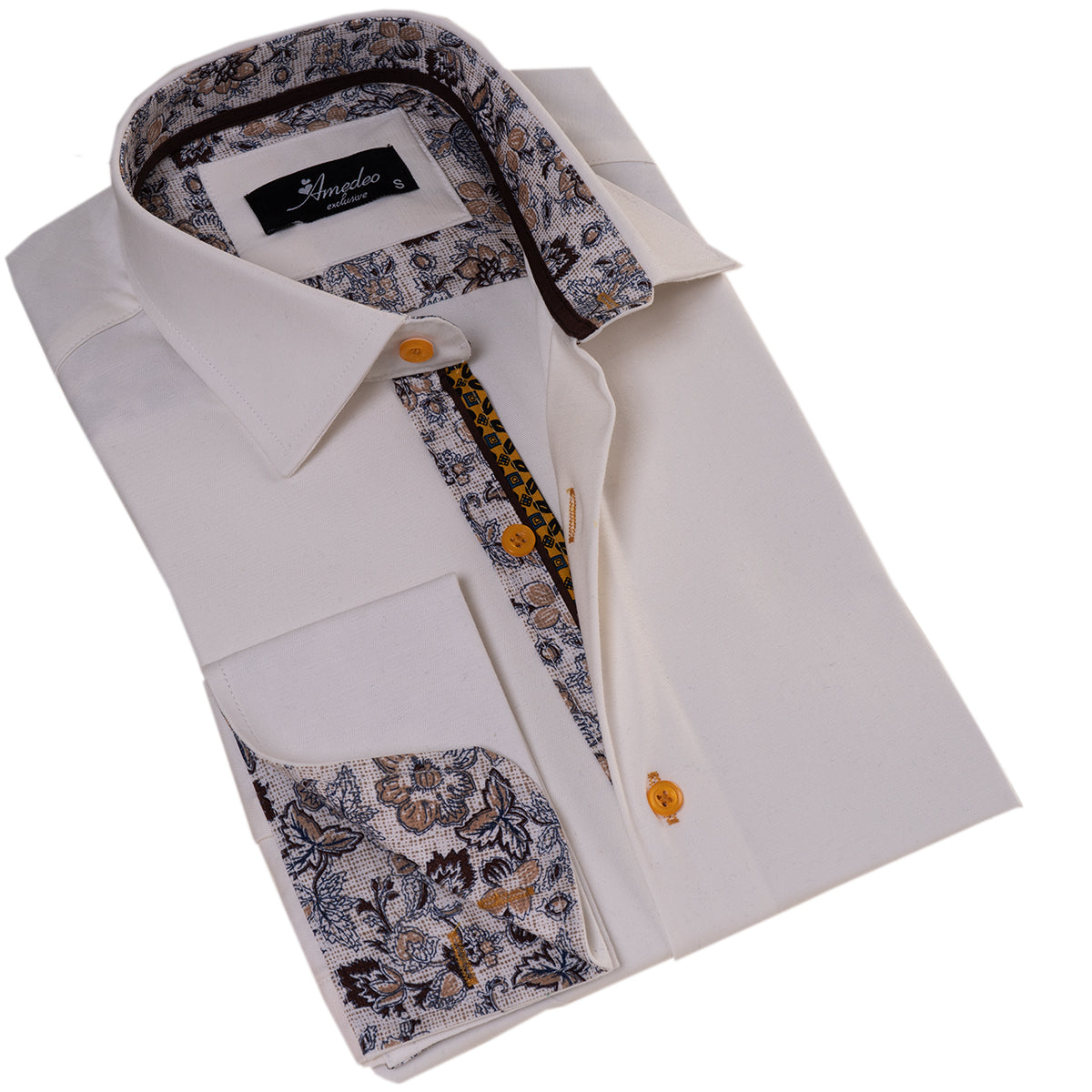 Amedeo Exclusive presents this button-down French Cuff Men’s Shirt, designed for both formal and casual wear. With its reversible cuff feature, you get two stylish looks in one shirt. Add your favorite cufflinks to elevate your outfit while staying classy and sophisticated.